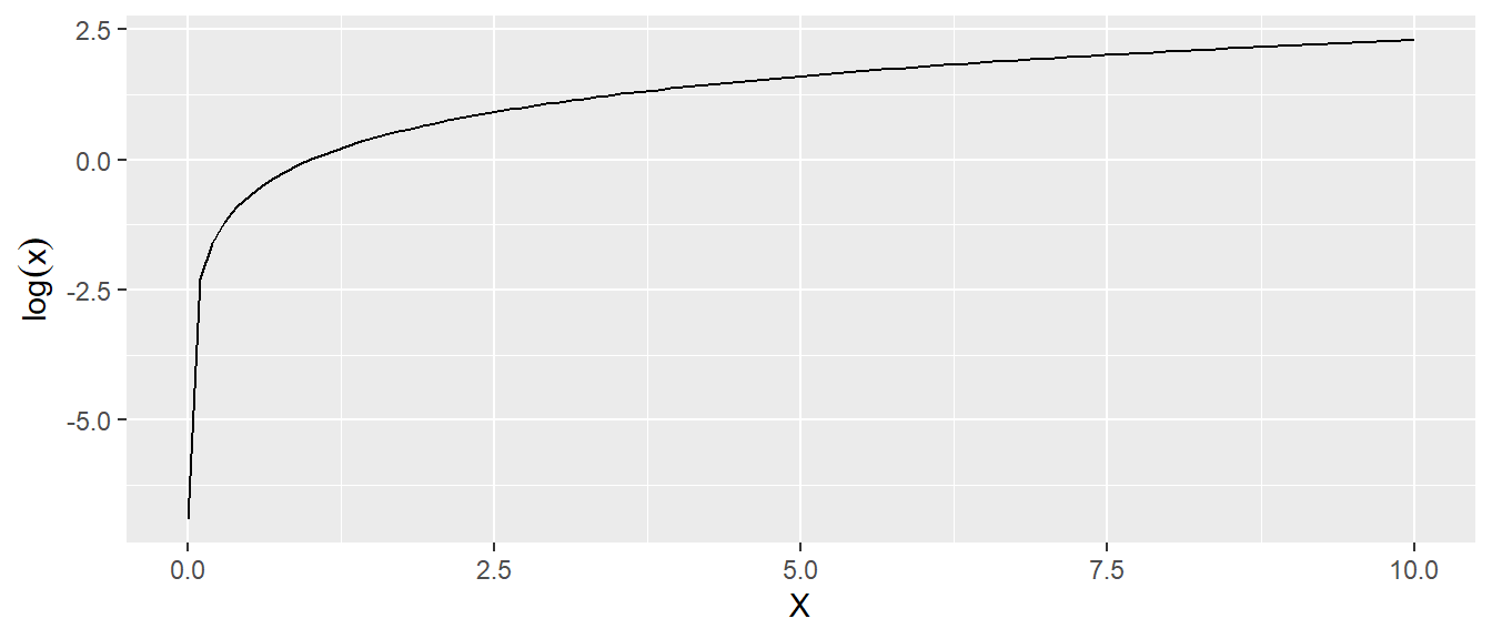 Dies bedeutet, dass der Logarithmus angibt, zu welcher Potenz die Basis \(b\) erhebt werden muss, um den Wert von \(x\) zu erhalten. In der Statistik wird meist der natürliche Logarithmus verwendet, der Logarithmus zur Basis \(e \approx 2{,}718\), der mit \(\log(x)\) oder \(\ln(x)\) bezeichnet wird. Der natürliche Logarithmus ist die Umkehrfunktion zur natürlichen Exponentialfunktion \(f(x) = e^x\). Es gilt.