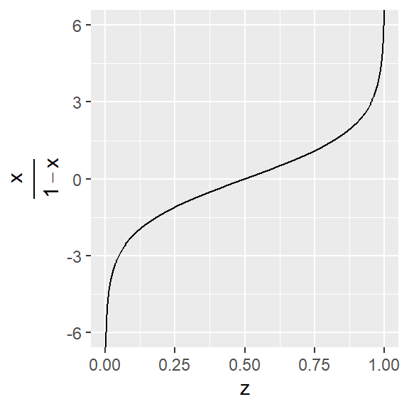 \[ \text{logit}(x) = \text{log}\left(\frac{x}{1-x}\right) \]